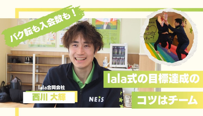 仕事は、一人で完結させるものではない。西川大輝さんが働くネイス体操教室 アイテラス落合南長崎ANNEX校では、指導者同士が意見を交わし、技術を高め合いながら、チームとして子どもたちの成長を支えている。未経験からのスタートでも続けてこられた理由の一つが、この環境にあった。lalaの「楽しんで結果を出す」組織の在り方を紐解く。