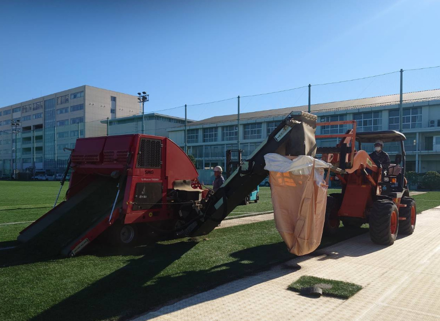 私たちの仕事は、人工芝撤去に特化した専門業者として競技場が新しく生まれ変わるための工事の先駆けとなるポジション。単なる撤去作業ではなく、フィールドを新たに生まれ変わらせるための重要なスタート地点です。