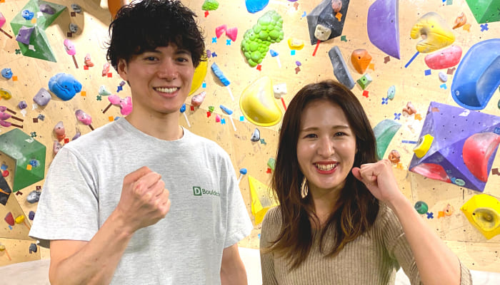 ┗ボルダリングジムですから、接客の要素もあります。ボルダリングを通じて、そしてあなたを通じて、誰かが笑顔になる。そんな風に働いていただけたら非常に嬉しいです!