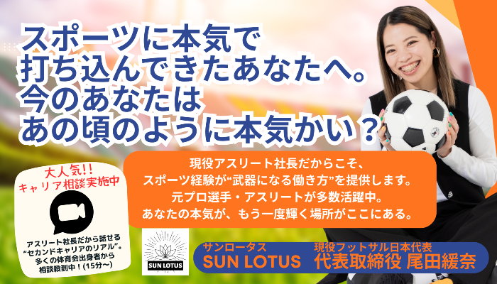 ・社長がアスリートだからこそ、セカンドキャリアへの不安や悩みに寄り添います。