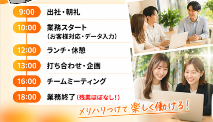 未経験から始められるオフィスワーク・営業サポート業務です。