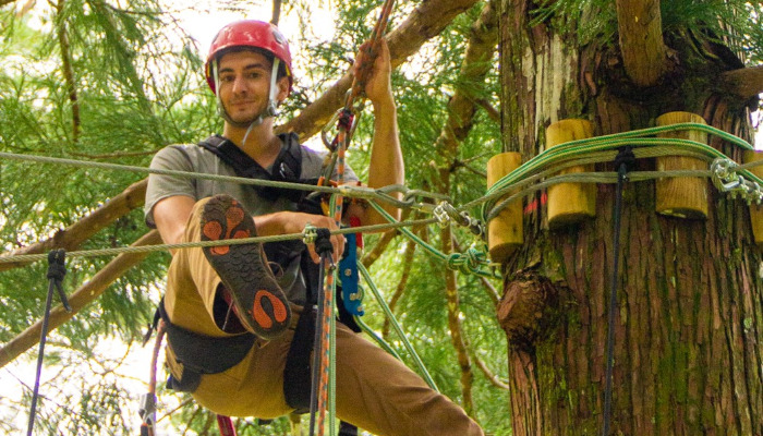 代表はフランス出身。来日し、日本の大学院を出た後に林業の地域おこし協力隊で十津川村と出合い、活動をスタート。ヨーロッパ式の森林の管理&活用法を広めたいと2020年に空中の村をオープンさせました。子どもから大人まで楽しめ、昼夜を問わず森林を堪能できる施設として地域から愛されています。