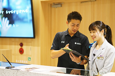 入退館や手続き業務など、お客様が気持ちよくご利用いただけるようにサポートやおもてなしするのがお仕事です。